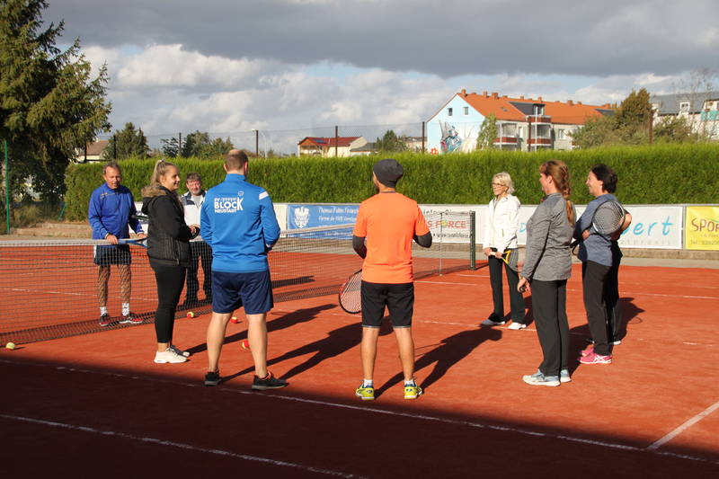 Eine weitere Station mit dem TennisMobil des TSA war am Dienstag, den 17.09.19, Schönebeck, besser gesagt die Tennisanlage vom TC Blau-Weiß in der Schönebecker Stadionstraße. Acht Lehrerinnen und Lehrer aus Staßfurt und Schönebeck hatten sich eingefunden, um vom Trainerteam der Tennisschule Ballplanet aus Magdeburg theoretische und praktische Hinweise zum trainieren der Tennistechniken im Sportunterricht zu bekommen. Zielgruppe sind dabei die Tennisanfänger.